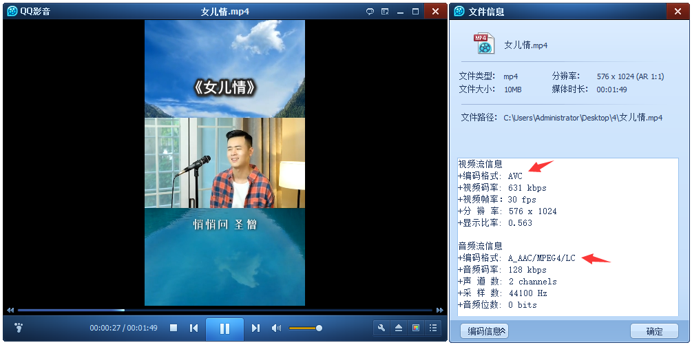 用QQ影音播放器查看文件信息-编码信息,它是错误的